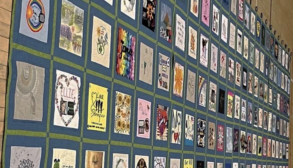 This is the Hampshire “Speak Their Name” memorial quilt. There are loads of these around the country, made by people who have lost loved ones to suicide, determined they should not be forgotten and determined to banish the stigma of talking about suicide and its impacts.